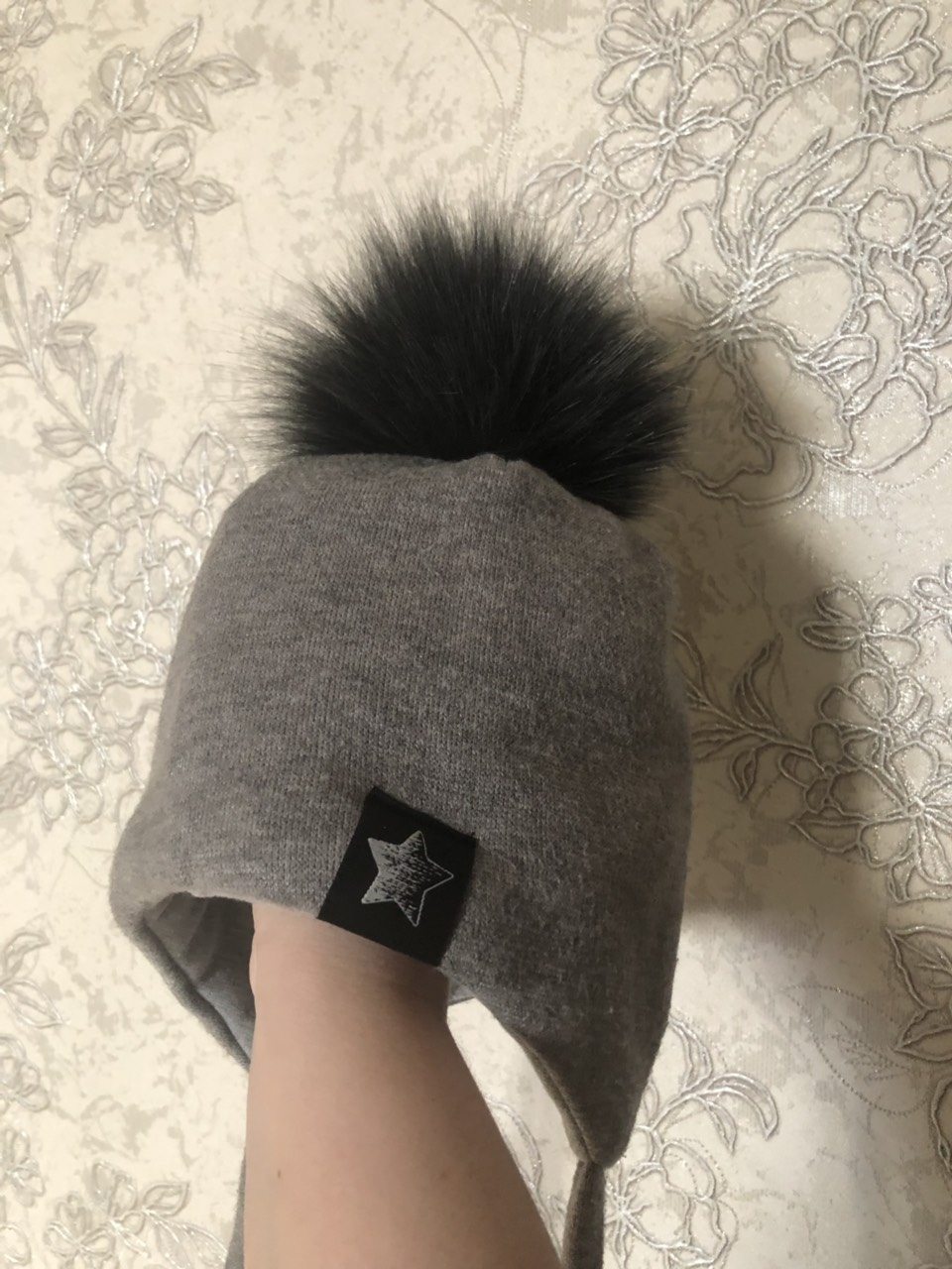 Просмотреть или сохранить оригинал: Классная теплая шапка унисекс с большим помпоном. 50-54